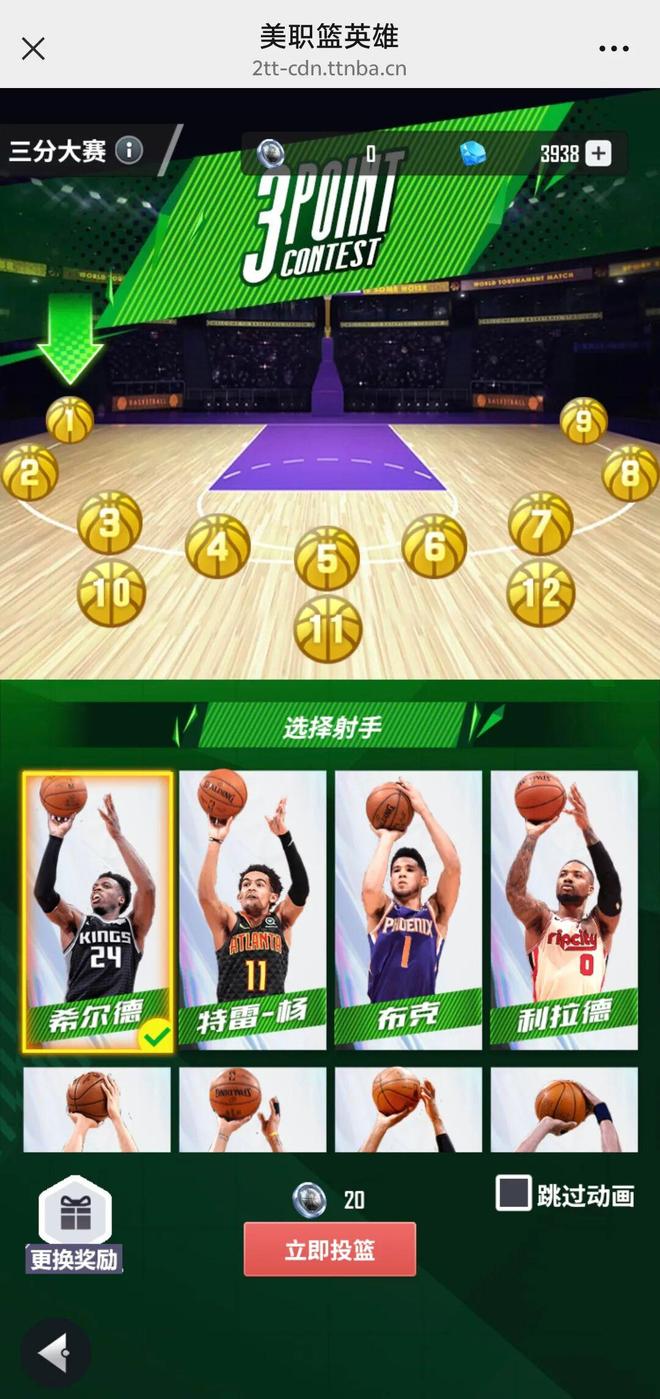 选择你信赖的三分射手为你拿下奖励