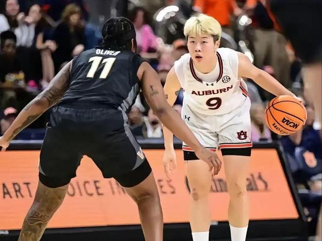 这位身高1米88,年仅20岁的小将,曾代表清华大学出战过CUBAL联赛,是球队的核心成员之一,不过在2024年她为了追逐更高舞台,决定从清华大学退学,加盟了NCAA的奥本大学。上赛季她代表奥本大学出战期间,也是球队的核心轮换,在场均28.2分钟的上场时间里,得到11.8分2.5篮板,三分球命中率来到36.5%,她也成为首位在NCAA D1赛场场均得分上双的中国球员