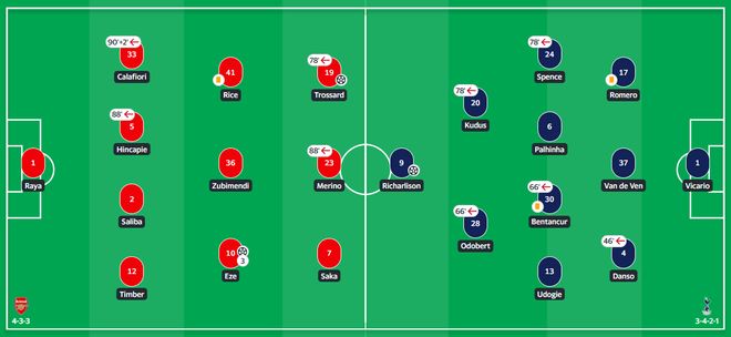 阿尔特塔本场的战术布置堪称大师手笔。面对主力中锋缺阵的情况,他果断变阵,将夏季新援埃泽置于进攻核心位置