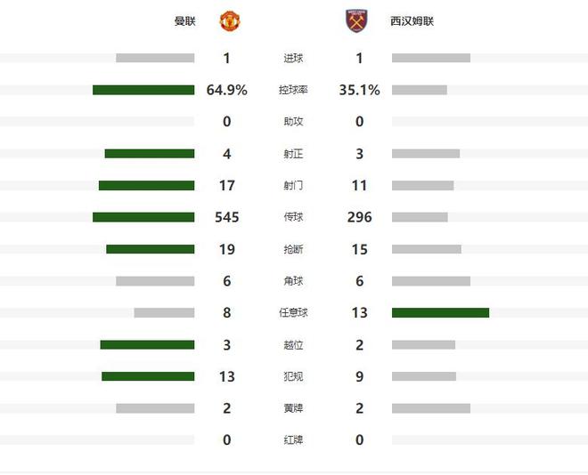 不过在第84分钟西汉姆联队扳平了比分,右侧角球开出后,鲍文前点甩头攻门,虽然马兹拉维门线解围,但马加萨随后的补射,让曼联无能为力,铁锤帮也将比分追至1平,不甘心3分变1分的曼联,接下来的时间发起了一波接一波的猛攻,但没有能够再次取得进球,只能接受平局的结果。